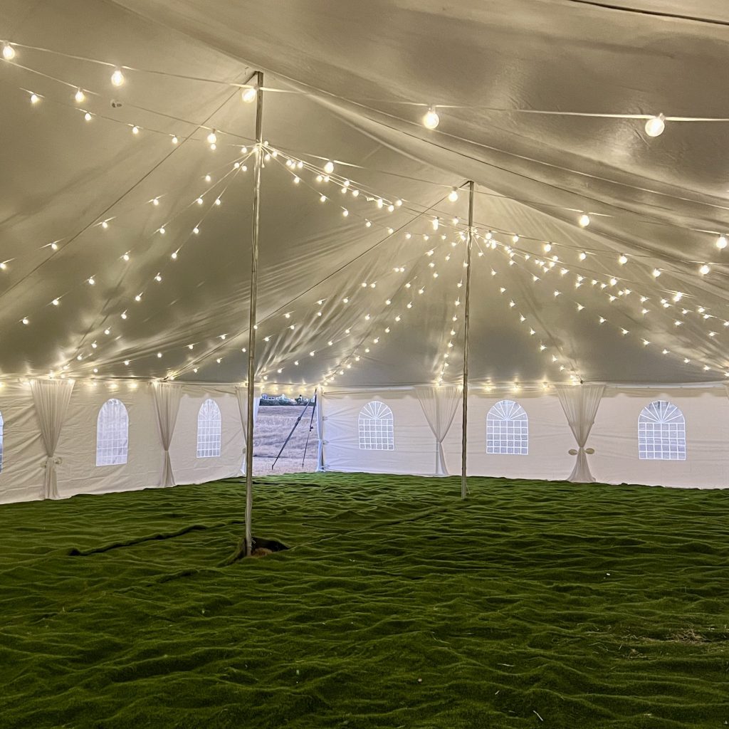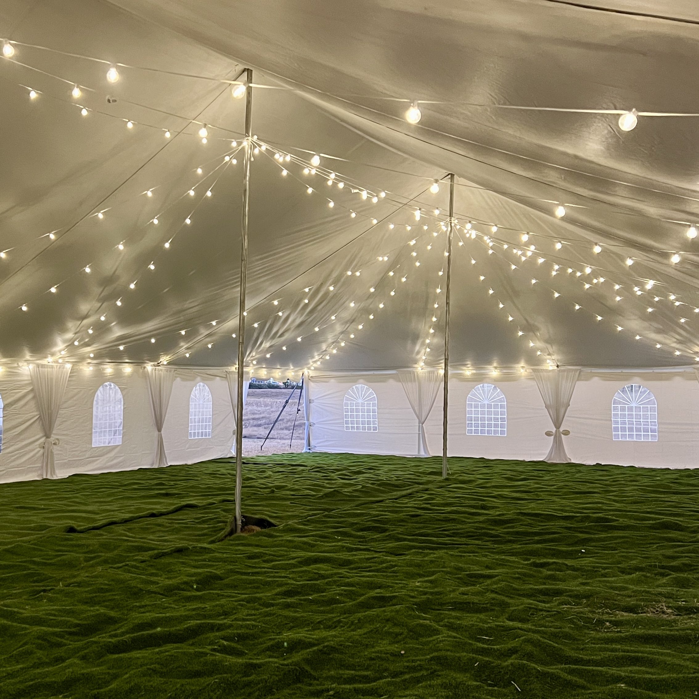 Lighting installation is handled by our professional crew unless otherwise noted. String lights may be rented for customer installation upon request. All installed lighting is set up and removed by our team.