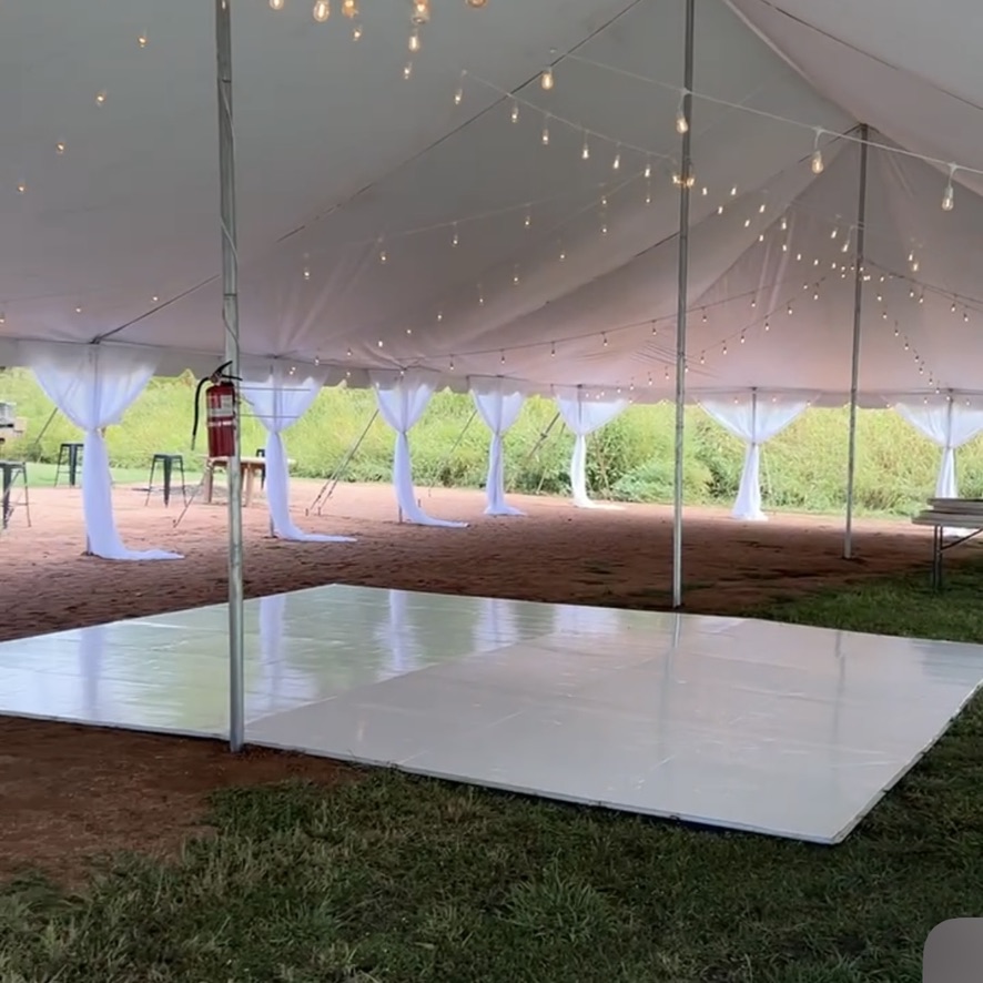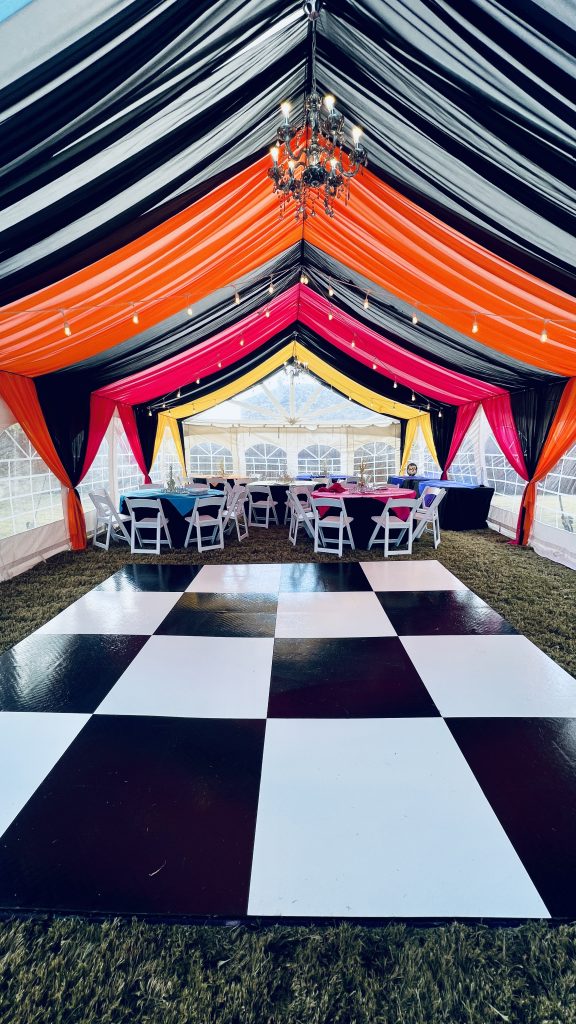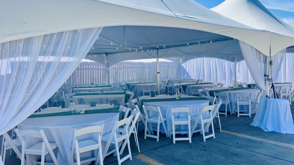 Let’s transform your tent into a beautiful, finished event space. Whether you’re planning a wedding, reception, or upscale outdoor celebration, our team will help you choose the perfect draping style, colors, and lighting to match your vision.