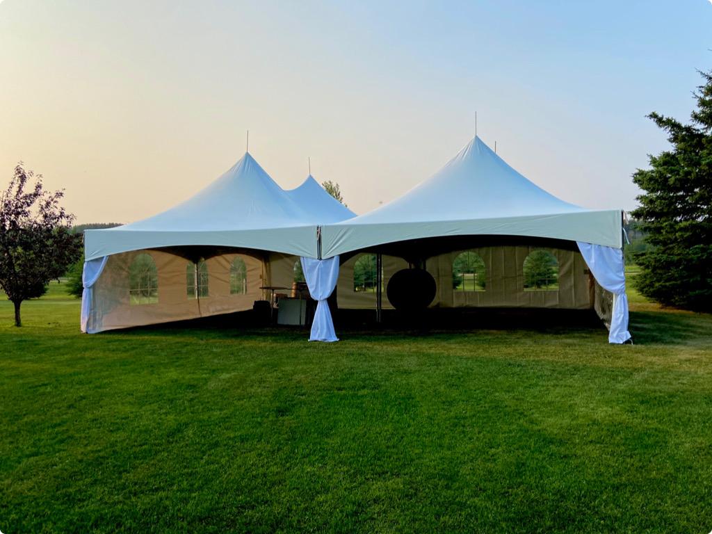 Draping can be added to most frame, high-peak, clear-top, and sailcloth tents. Our team will confirm compatibility based on your tent size and layout.