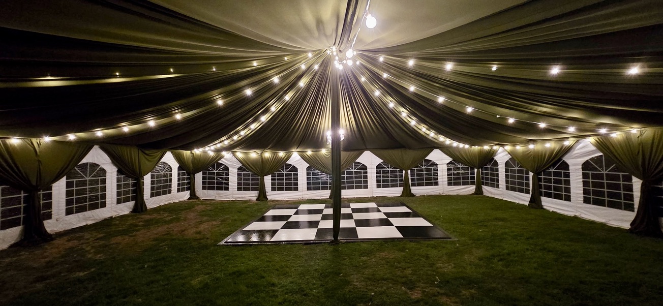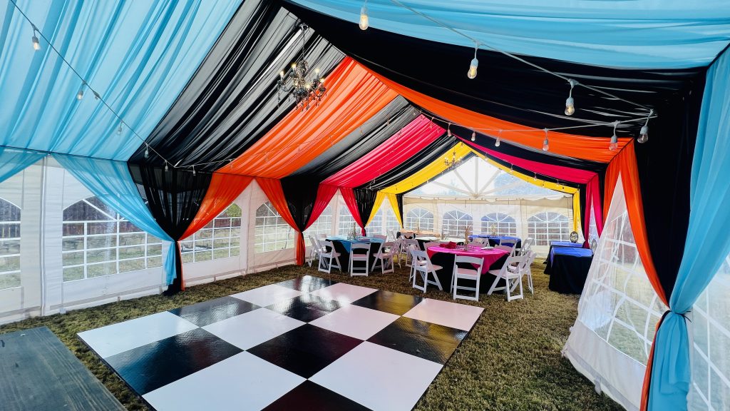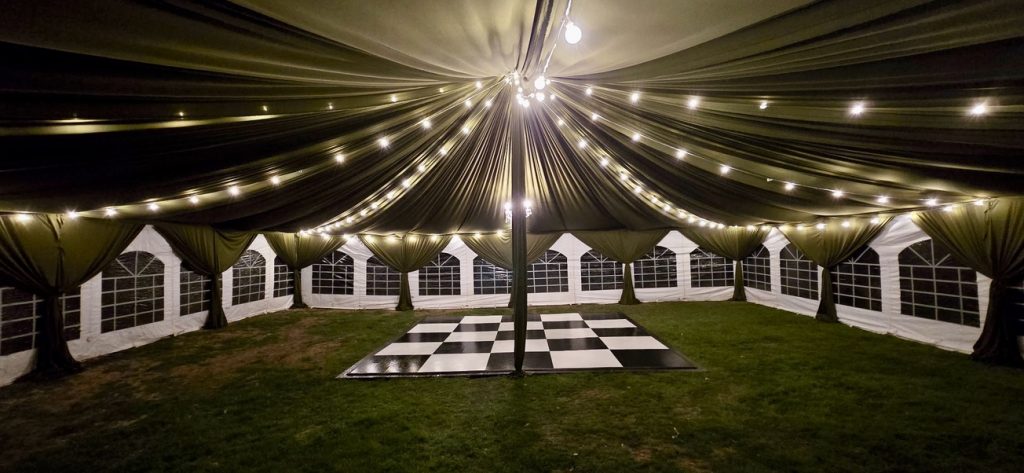 Draping isn’t just décor — it’s what turns a tent into a venue.