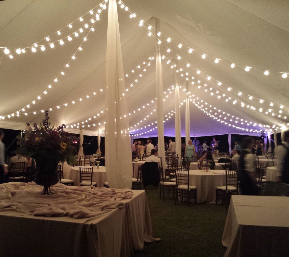Our team can design custom lighting layouts that complement your draping style and tent size.